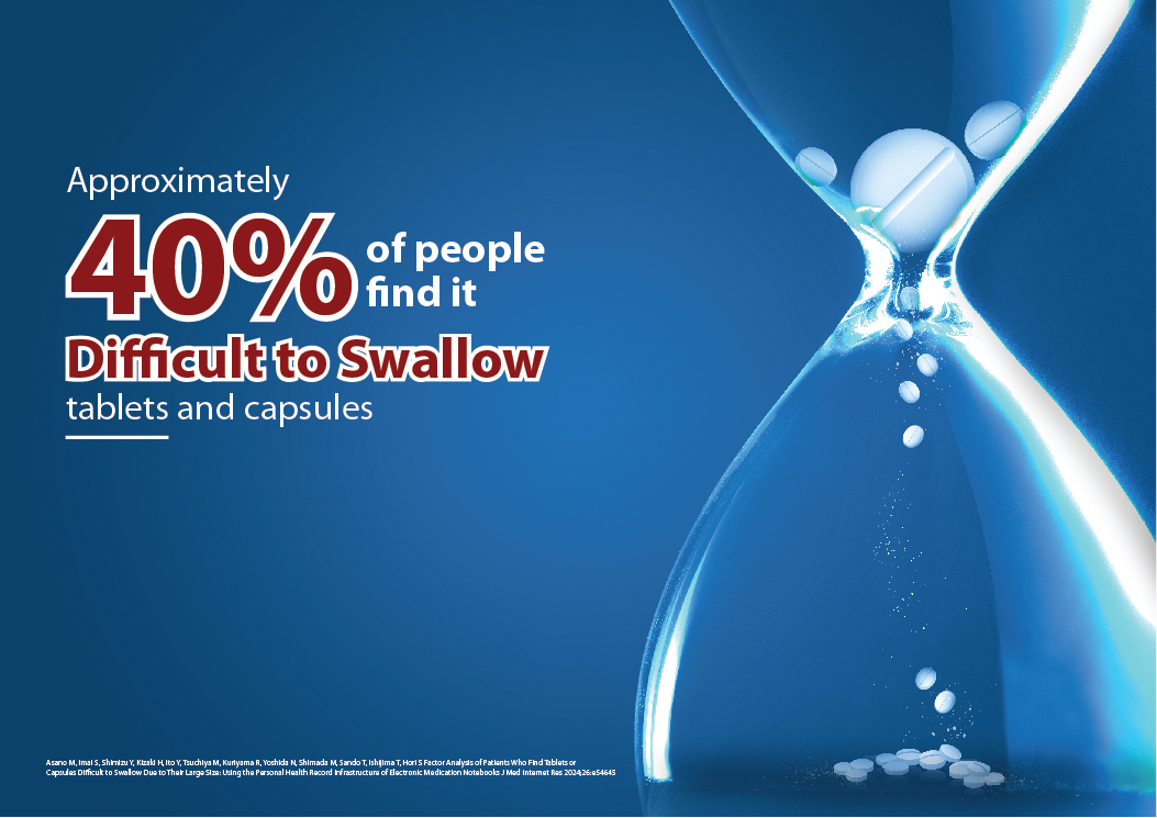 “Approximately 40% of people find it difficult to swallow tablets and capsules.”
