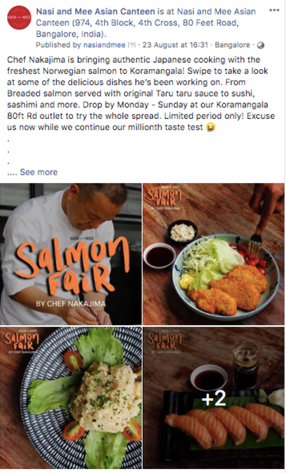 Nasi and Mee approached us to promote their limited-time event “Salmon Fair by Chef Nakajima”. The objective was to generate footfall to their Koramangala outlet and create buzz around the exclusive Japanese salmon dishes.