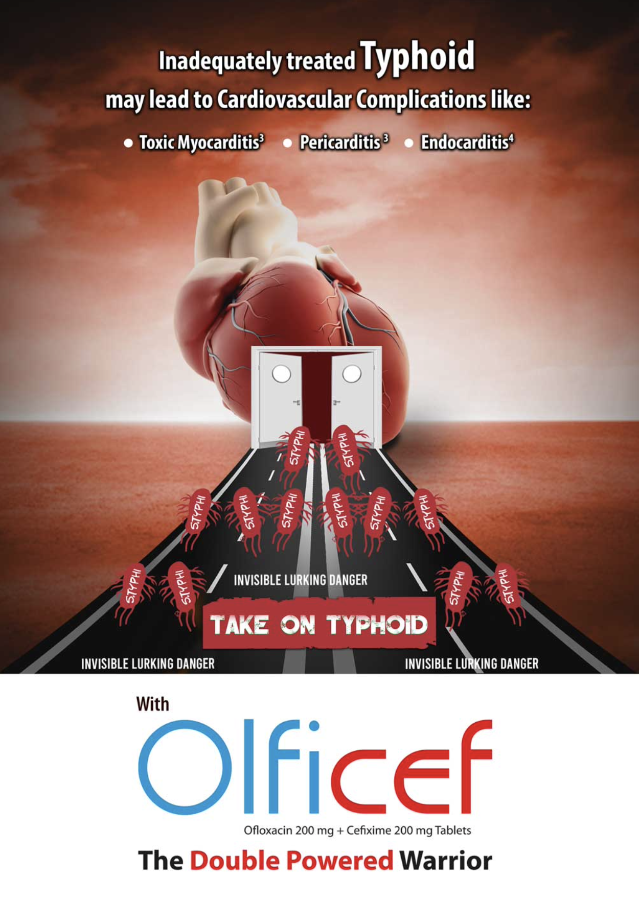 Campaign Objective: The primary objective of this campaign is to raise awareness about the invisible threat posed by Typhoid and emphasize the importance of timely treatment with Olficef. By showcasing how Typhoid can travel through the bloodstream and infect vital organs, we aim to create a sense of urgency and encourage proactive healthcare measures.