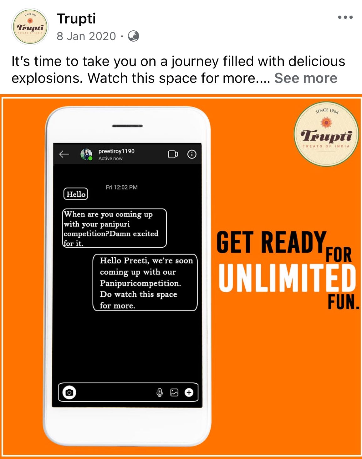 The “Pani Puri Contest” was not just a successful offline activation, but a social-first campaign that helped Trupti increase: